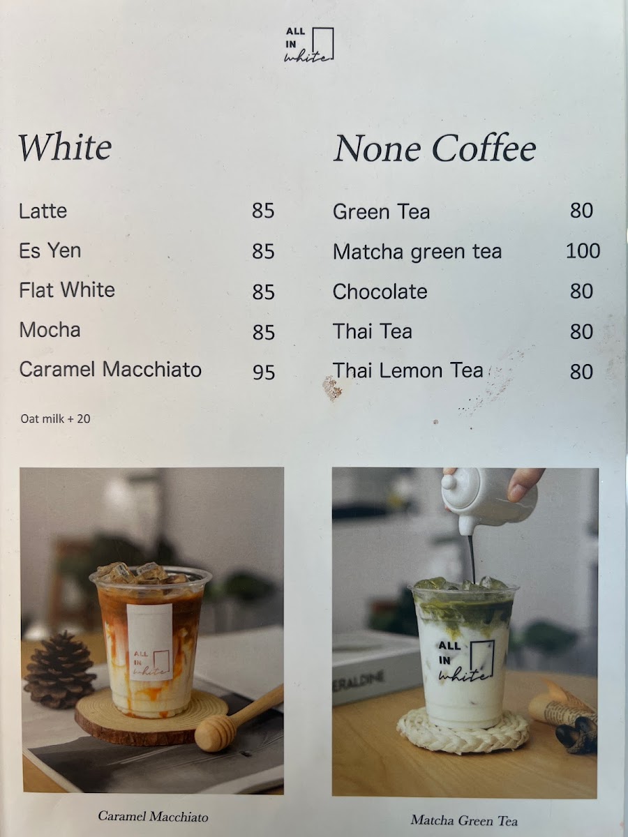 All in white Cafe' Menu